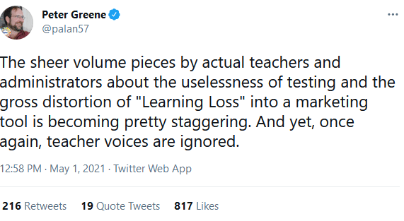 The Institute for Education policy at Johns Hopkins joined Jeb Bush’s Chiefs for Change in calling for more testing. Their claim,