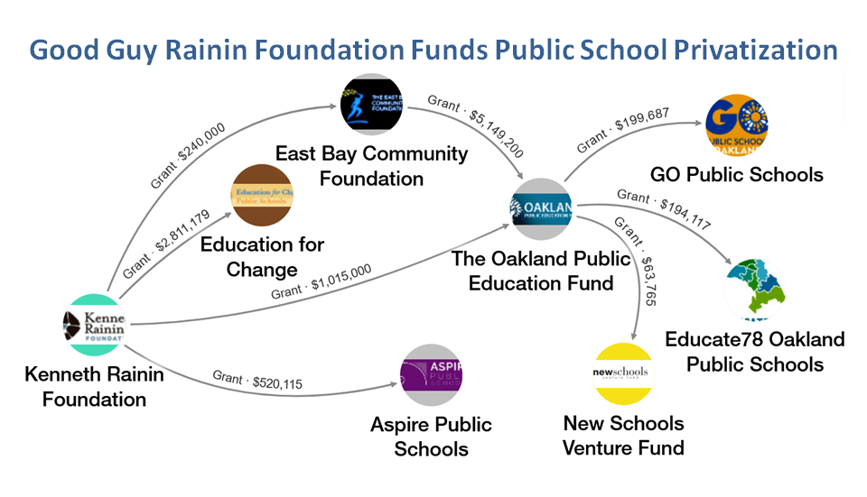 The Rainan Foundation has spent significant sums on advancing its “Seeds of Learning” reading program and the corporate control of public education. As the LittleSis map depicted above shows, the foundation sends large grants both directly and indirectly to billionaire funded “school choice” promoting organizations.