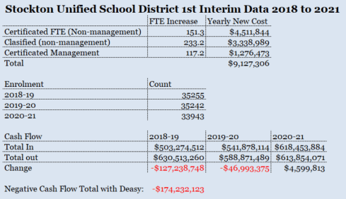 In 2018, Stockton Mayor Michael Tubbs who was heavily influenced by Michael Bloomberg pushed the school board to hire disgraced former LA Superintendent John Deasy. This was the beginning of SUSD’s financial problems. In the two years Deasy was in charge, the formerly financially stable district had a negative cash flow of $174 million. Much of this deficit were caused by a hiring binge.