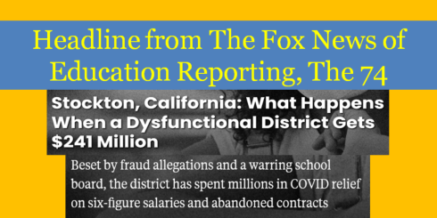 The 74 contemptuously states, “But almost three years after the first relief dollars began flowing to school districts, Stockton has spent only a fourth of the $241 million it received, overcome by dysfunction in its central office and deep mistrust among board members.”