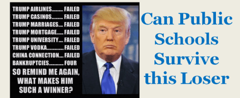 President Trump just announced that he disrespects teachers and will undermine public schools. He is so determined to end taxpayer funded free public education; he is trying to convince people that the greatest education system in the history of the world is a failure.