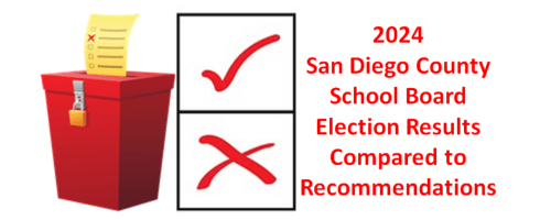 Before the recent election, I wrote recommendations for several school board seats in San Diego County. The San Diego County Registrar of Voters has posted the final official results which are transcribed here with a few comments.