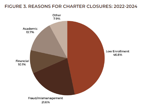 The charter industry says their schools are more academically accountable and are closed if they do not meet the agreed to goals. However, NPE’s research discovered that this was the cause for only a minority of the schools that closed. Not being able to maintain enough enrollment to be viable or corruption and mismanagement were the cause in more than 68% of closures.